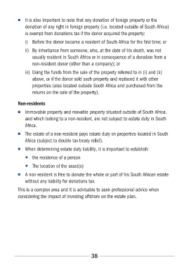 ■■ A non-resident is free to donate the whole or part of his South African estate