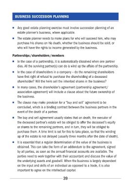 ■■ The buy and sell agreement usually states that on death, the executor of
